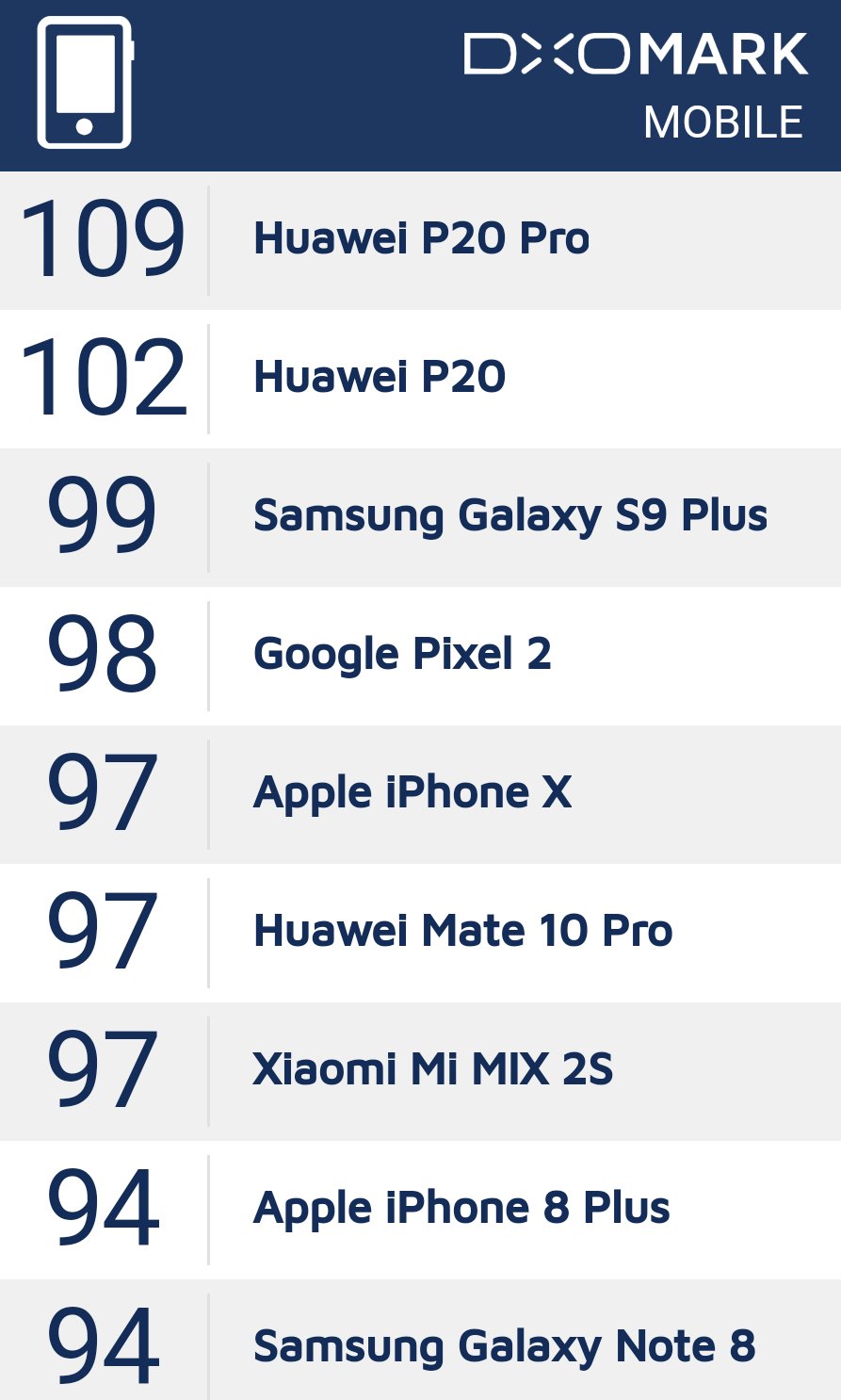 Разница в качестве съемки, по данным DxOMark, минимальна, несмотря на различные конфигурации камер и ПО. По мнению составителя рейтинга, флагман Huawei демонстрирует лучшие результаты при съемке фото, главным образом благодаря низкому уровню шумов и артефактов.