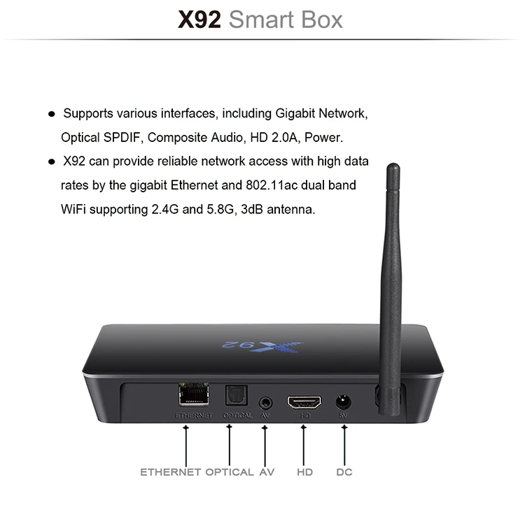 X92, без сомнения, является самой быстрой ТВ-приставкой с наибольшей аппаратной функциональностью. Оснащен молниеносно быстрым 64-разрядным (8) ядерным процессором Cortex A53 с тактовой частотой 2 ГГц, 3D-графическим процессором MaliT820 с тактовой частотой 750 МГц и 2 ГБ оперативной памяти DDR3. Х92 — идеальное устройство для всего, что связано с потоковой передачей и телевизионными вычислениями. X92 может справиться со всей тяжелой работой, когда речь идет о 3D-играх, большом объеме памяти, потоковой передаче HD и многозадачности с вашими любимыми приложениями Android. X92 имеет все оборудование и ресурсы, чтобы стать вашим мультимедийным устройством «все в одном». Теперь доступный с 3 ГБ ОЗУ и 32 ГБ памяти, X92 стал еще БЫСТРЕЕ и оснащен большим объемом встроенной памяти, о котором вам никогда не придется беспокоиться, «недостаточно места», «слишком много приложений» или повторных загрузок!