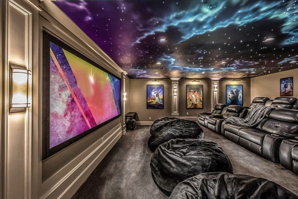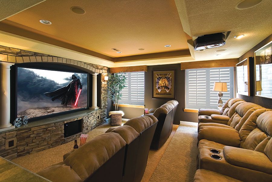 Если ваш домашний кинотеатр выглядит как уменьшенная версия кинотеатра, тогда мы рекомендуем проектор. Эти пространства предназначены для максимизации впечатления от просмотра с более мягким, более похожим на кинотеатр изображением, а не с ультраярким телевизором, которому могут потребоваться различные регулировки яркости и контрастности в темной комнате, предназначенной для просмотра с эффектом присутствия. Кроме того, вы можете смотреть фильм таким, каким он должен быть, в сверхшироком соотношении сторон, а не в формате 16:9.
