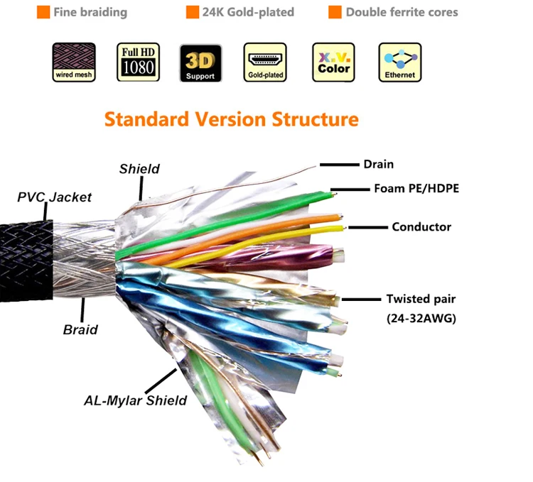 Как бы ни старались маркетологи выделить особые качества дорогих HDMI-кабелей (дороже $100), включающих в себя золотые и серебряные элементы, практика показала, что они практически ничем не отличаются от бюджетных 5-долларовых аналогов по способности без потерь передавать видеосигналы и многоканальный звук.