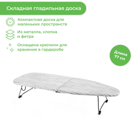 Размеры: В24см x Ш80см x Г30см | Вес: 1,2 кг | Гладильная поверхность: Д80см x Ш30см | Высота в сложенном виде: 80см | Чехол, допускающий машинную стирку: Да | Подходит для парогенераторов: Н/Д