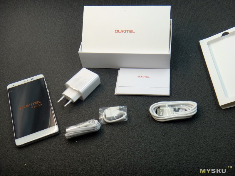 В комплектации Oukitel K6000 Plus производитель остаётся верен себе – ничего лишнего:
