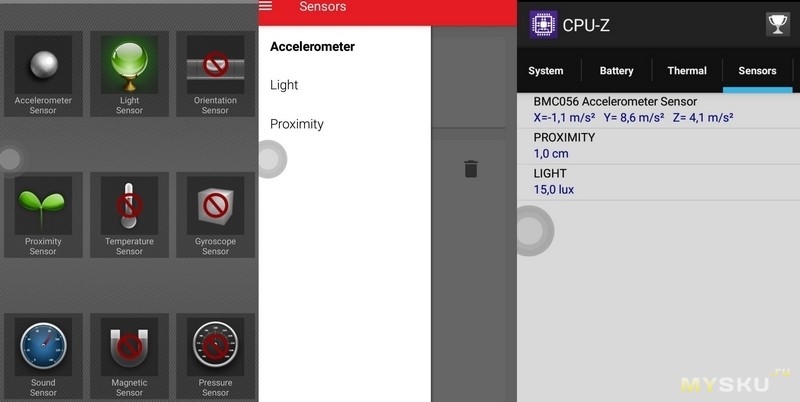 Набор датчиков бюджетный, акселерометр, освещенность и приближение.
