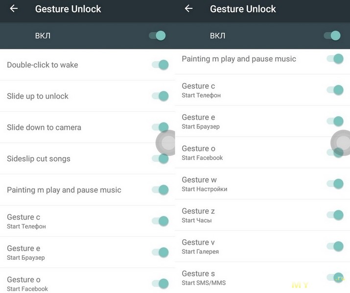 Присутствует возможность самостоятельно рисовать росчерк для запуска выбранного приложения.