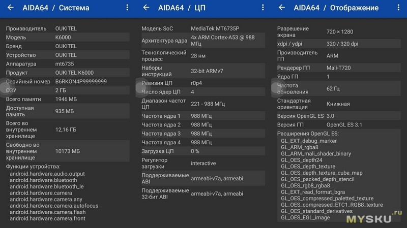 | Платформа | MTK 6753, 8 ядер Cortex-A53 по 1,3 гГц |
