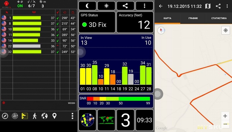GPS без поддержки ГЛОНАСС, но довольно шустро ищет спутники и не рвет трек.