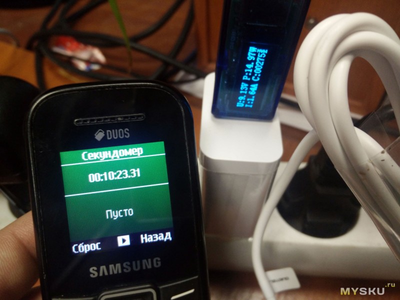 Что получаем в итоге, если даже брать математички я заряжал 10 минут вместо 5. В телефоне стало 8%, тогда если брать 5 минут будет 4%. При более чем часовом разговоре смартфон разрядился на 1%, получается если говорить 2 часа, то будет 2%. Это не совсем точно +-, но даже беря во внимание погрешности, слоган можно считать справедливым. С оставшимися 7% с 15-00 смартфон в режиме коротких разговоров, смсок и чтения почты прожил до вечера, где на уровне 5% встал на зарядку.