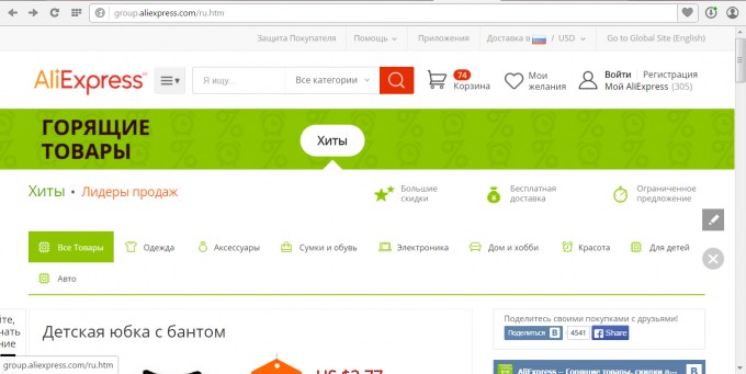 Первых покупателей всегда интересует вопрос, где найти Горящие минуты. Поэтому обратите внимание на порядок поиска и правила покупки вещей. Если вы планируете совершать покупки через компьютер, то зайдите на главную страницу сайта и в верхней части нажмите «Горящие товары». Здесь представлен полный список доступных товаров по сниженным ценам, но если вы хотите купить конкретную вещь, то вы можете выбрать конкретную категорию, например, женская одежда и детские товары.