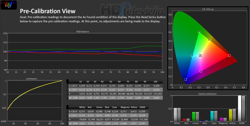 На приведенных ниже скриншотах из SpectraCal CalMAN ПО для калибровки ISF можно посмотреть результаты тестов: