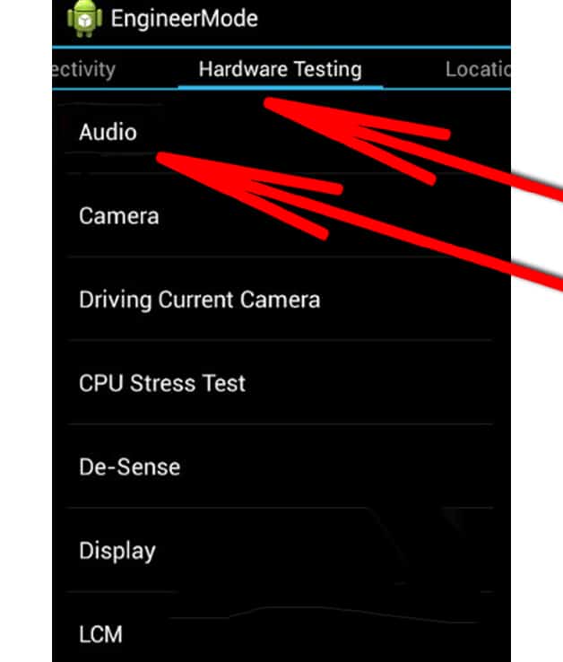Для разных моделей смартфонов, таблица с кодами приведена ниже. Samsung на части устройств для инженерного меню принимает код *#*#197328640#*#*. После нажать на зеленую трубку. - После того как меню открыто, ищем раздел «Hardware Testing». В нем есть нужные регулировки по звуку – раздел «Audio».