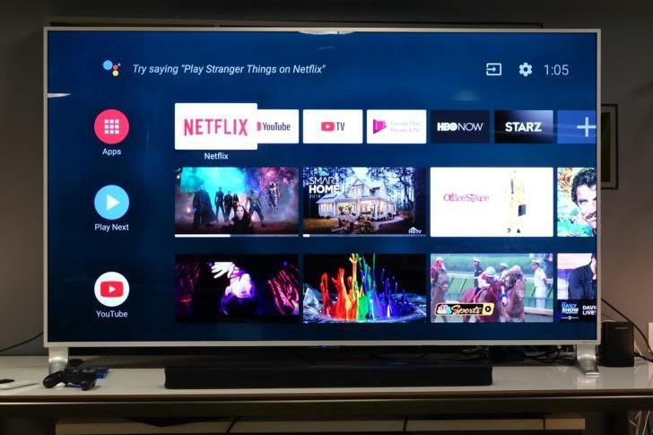 Вы также узнаете, что он находится на Android 9 Pie TV во время установки. Немного похоже на Tizen от Samsung, вы получаете возможность использовать свой Android-смартфон, с которого телевизор принимает на себя многие настройки, включая имена пользователей и пароли для различных служб, что значительно упростит создание телевизора.