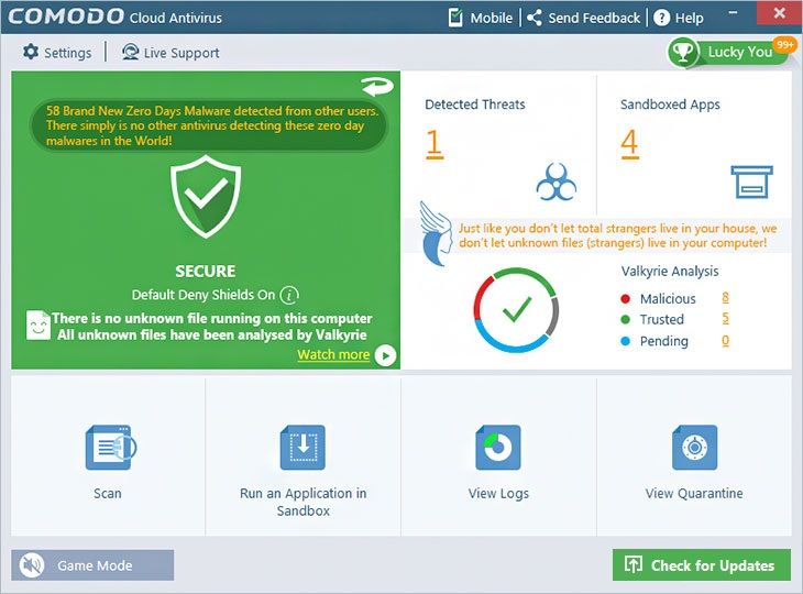 Антивирус обнаруживает 99,9% угроз в режиме реального времени.