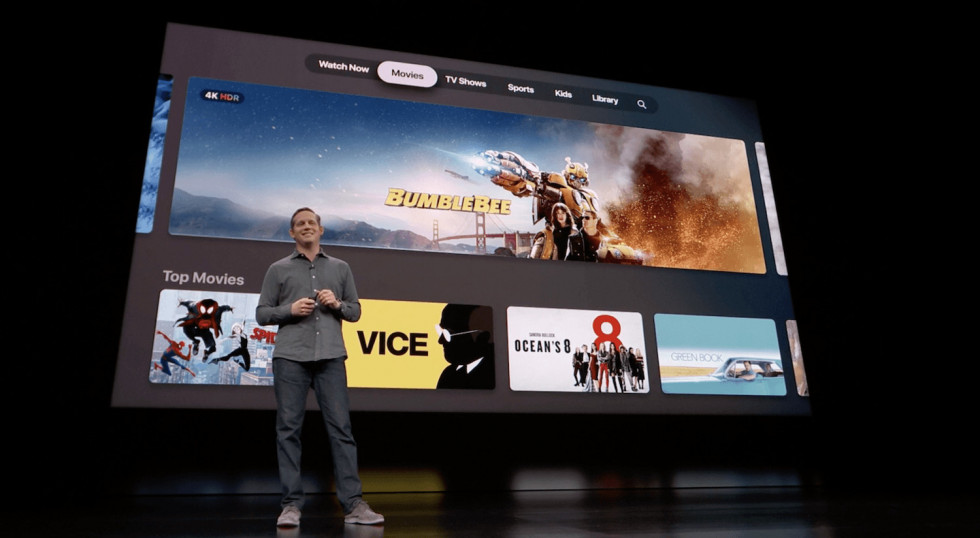 После мероприятия Apple в марте 2019 года приложение TV претерпело капитальный ремонт, в результате чего оно было переориентировано на центр потокового видео, распространяемого Apple . В новой версии добавлена поддержка каналов Apple TV и запущен новый значок, похожий на значок оборудования Apple TV, заменяющий предыдущий значок, похожий на телевизор .
