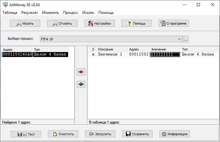 8. Если повезло, то программа найдет 1-2 значения, выбираем значение(я) и изменяем например на 99999 (до миллиардов лучше не «доходить», на ВМ программа вылетала с ошибкой), подтверждаем, заходим в игру.
