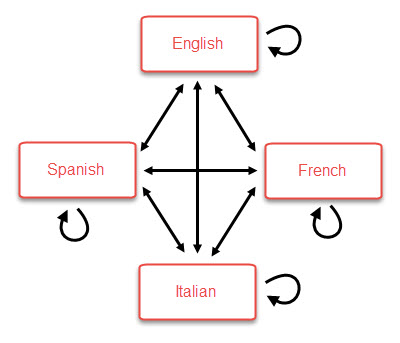 Второе базовое правило касается обратных ссылок. Независимо от избранной реализации, каждому URL необходимы обратные ссылки на любой другой URL (ссылки должны вести на канонические версии). Чем больше у вас языков, тем больше вы можете склоняться к тому, чтобы ограничить эти обратные ссылки: но этого делать не стоит, т.к. в противном случае атрибуты могут быть определены неверно. Если у вас 80 языков, тогда у будет и 80 hreflang ссылок для 80 URL.