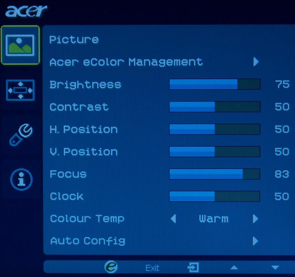 Horizontal Position (положение по горизонтали) | Настройка горизонтального расположения изображения (только с входом VGA). | |