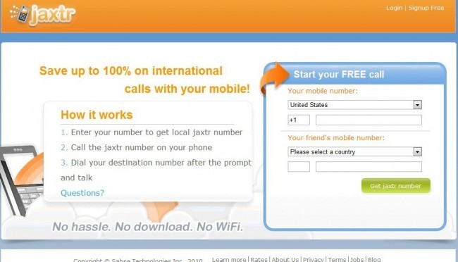 Сервис для звонков и отправки СМС через интернет Jaxtr. Адресату не нужно быть пользователем этого сайта или иметь установленную программу. Но для совершения бесплатного звонка есть условие – звонящий должен находиться в сети свободного подключения по Wi-Fi.