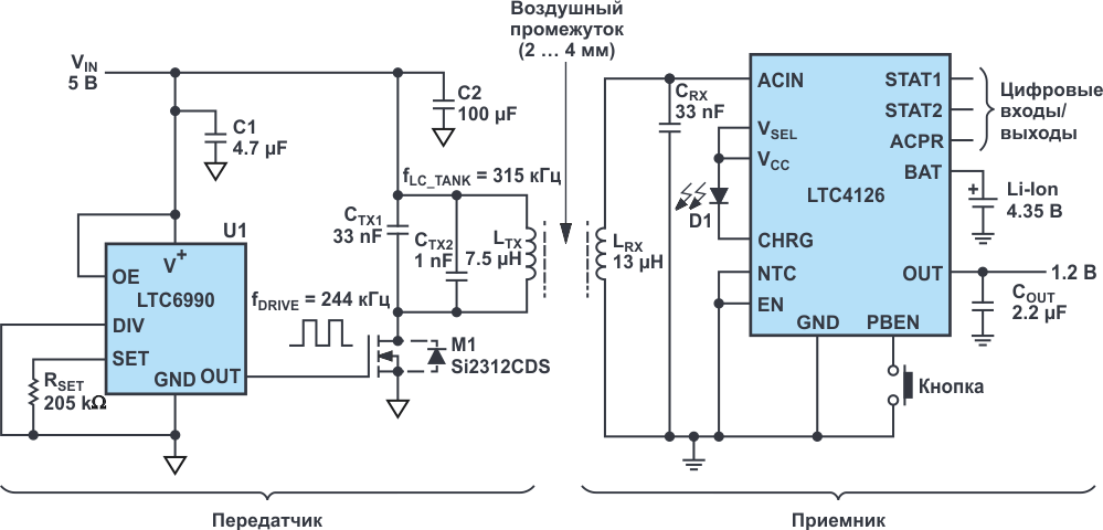 В этой технике передатчик подключается к розетке для генерации радиоволн. Вы можете зарядить аккумулятор, настроив приемник на ту же частоту, что и передатчик.
