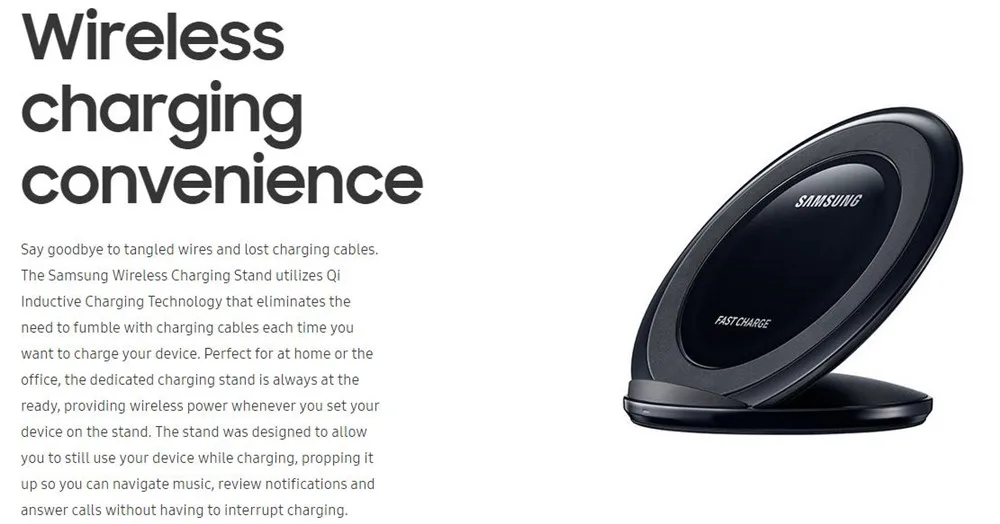 Больше никакой путаницы с беспроводной зарядкой. Кабриолет Samsung Wireless Charging Convertible использует технологию индуктивной зарядки Qi, поэтому у вас не будет большого беспорядка из-за всех этих запутанных аккордов, вызывающих беспокойство, как вы знаете. Отлично подходит для вашего офиса и еще лучше для дома благодаря приятному дизайну Samsung. Вы можете легко слушать музыку, так как этот дизайн был создан для того, чтобы вы могли выполнять свою работу, или вы можете так же легко использовать музыку для Android.