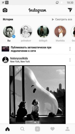 Instagram попытается опубликовать фото, но не сможет это сделать, потому что доступ к Сети будет отключён. Тем не менее обработанная картинка появится в галерее устройства. После этого останется только отменить публикацию поста, нажав на три точки справа и выбрав «Сбросить публикацию», а затем выключить режим «В самолёте».
