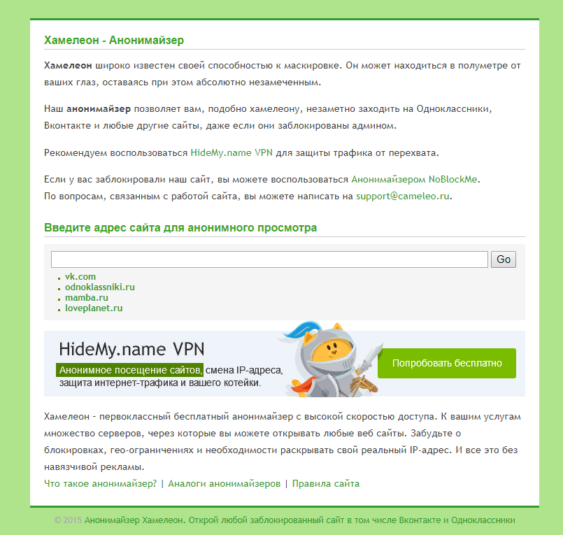 БЕСПЛАТНЫЙ АНОНИМАЙЗЕР ХАМЕЛЕОН