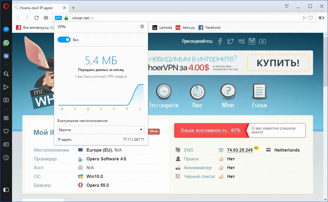 Это приложение для браузера, которое автоматически разблокирует веб-сайты, шифрует ваш интернет-трафик и делает вас анонимным.