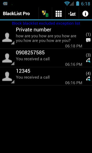 Blacklist Plus — идеальный блокировщик вызовов, который может мгновенно прервать нежелательные вызовы или просто выключить их звук, в зависимости от того, какой метод блокировки вы выбрали. Независимо от вашего выбора, журнал вызовов вашего телефона будет очищен от всех следов заблокированных вызовов.