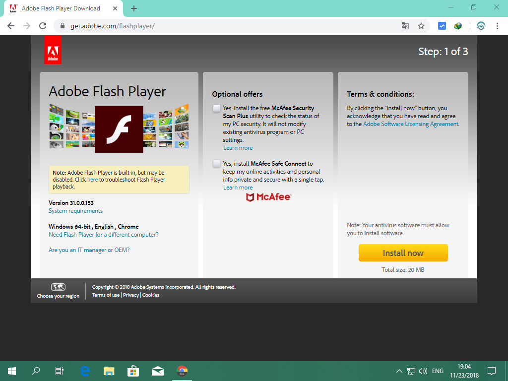 Шаг 1. Перейдите на страницу загрузки Adobe Flash Player. Затем скачайте и установите его.