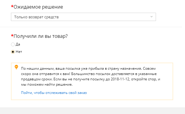 Но лучше настаивать на возмещении средств и оформить заказ уже у другого магазина. Если конфликт будет решен в пользу покупателя – средства вернутся на счет в течение трех дней. В разделе «Спор» появится графа, которая покажет срок возврата и где можно отследить все этапы.