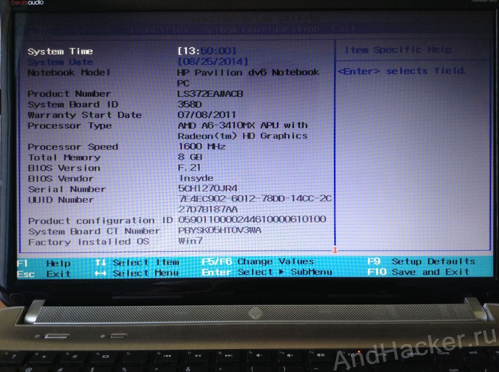 Глава 6 BIOS ноутбука. Работа на ноутбуке