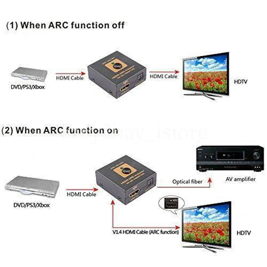 В сравнении со стандартным HDMI без поддержки ARC, где для передачи и захвата аудио с ТВ необходимо подключать дополнительный оптический аудиокабель, модифицированный протокол HDMI версии 1.4 и выше позволяет подключать аудиоустройства напрямую.