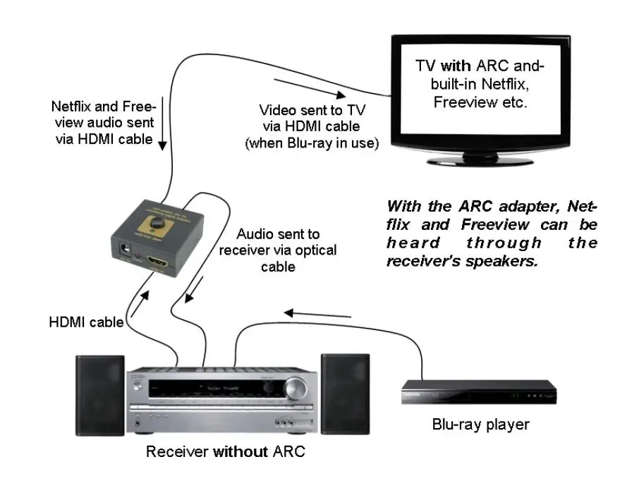ARC и обозначает как раз Audio Return Channel, канал для возврата звука. Это дает только возможность использовать один кабель для передачи видео+аудио от ресивера к телевизору и в обратном напривлении звук от тв к ресиверу, саундбару, системе домашнего кинотеатра.