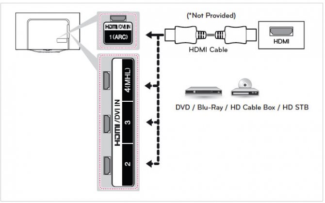 На тв разъемы HDMI могут обозначаться такими буквами: STB, DVI, ARC, MHL. Все они по функциональности одинаковые, кроме MHL. Но еще и ARC разъем используется для возврата звука, если есть такая потребность, а так он работает как обычный HDMI. А вот hdmi mhl объединяет в себе функциональность интерфейса HDMI и разъема MicroUSB, служит для подключения смартфонов к телевизорам.