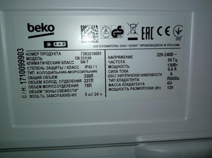 Наклейка на внутренней стенке холодильной или морозильной камеры содержит всю необходимую информацию в нужном объёме. При отсутствии – обратиться к сопроводительной документации, идущей в комплекте: паспорт или инструкция.