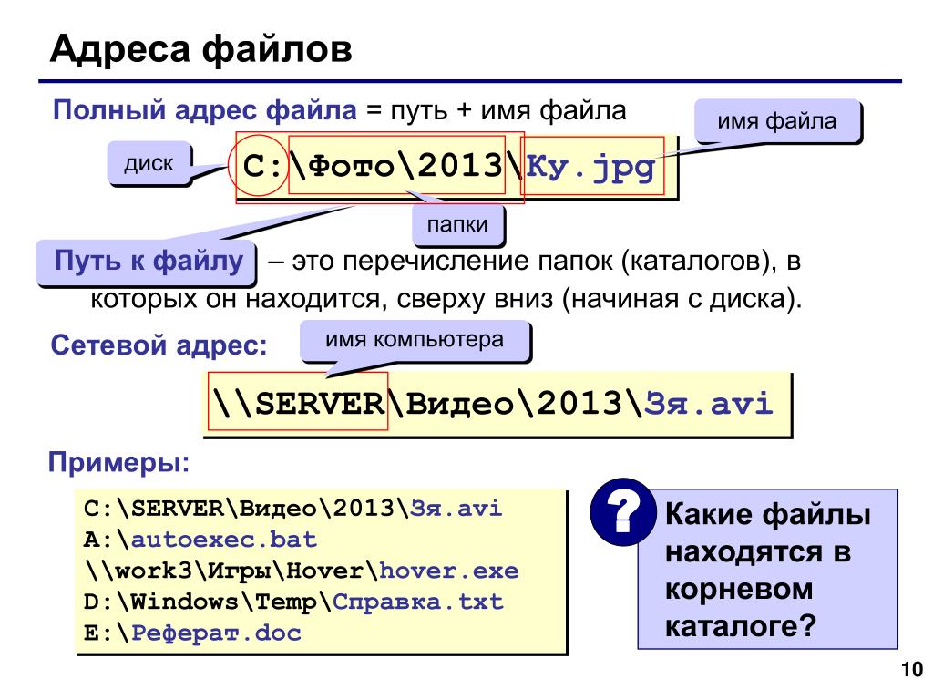 Путь. Для доступа к нужному файлу он формируется согласно образцу, находящемуся в системе файлов в компьютере.