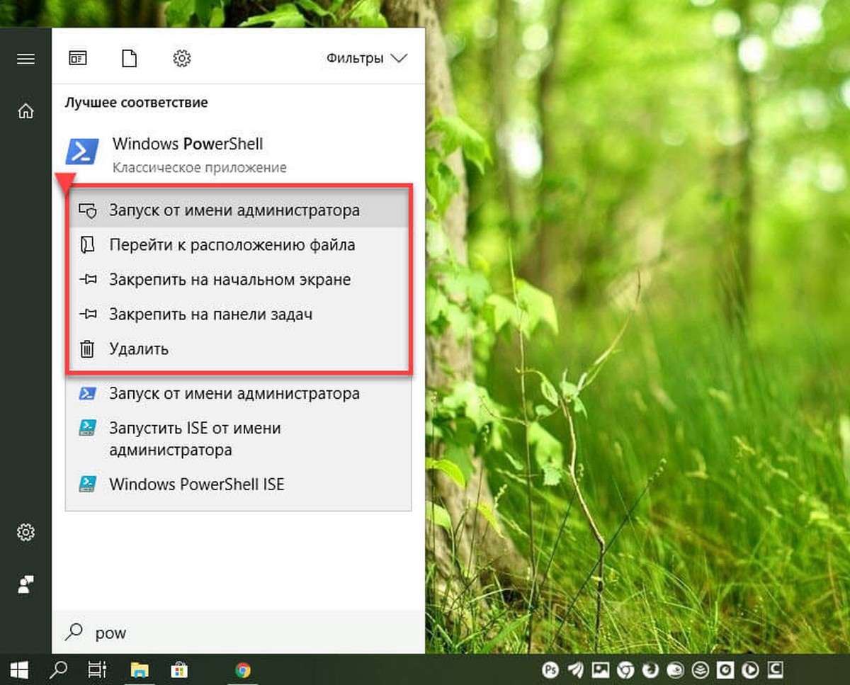 Это также работает в меню «Пуск», просто начните печатать PowerShell, затем кликните правой кнопкой мыши на появившемся представлении Windows PowerShell и выберите Запуск от имени Администратора.