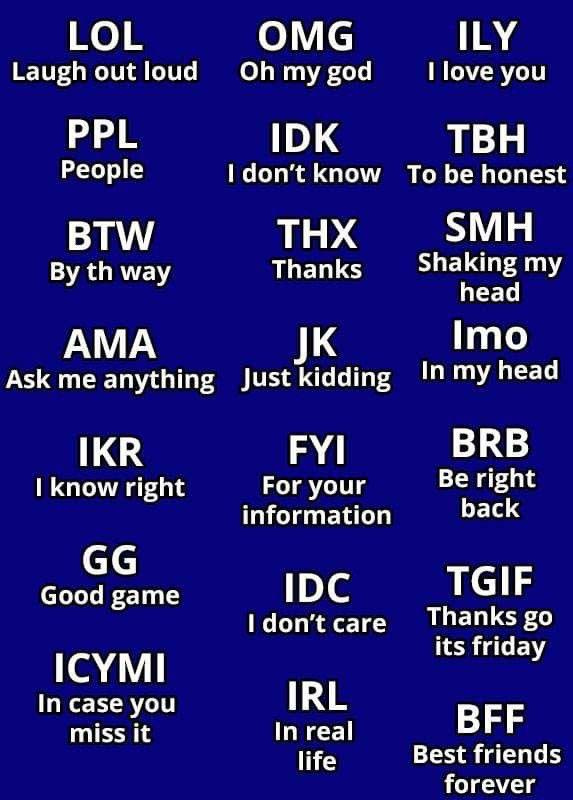 Аббревиатура чаще всего используется и понимается молодым поколением (подумайте о поколении Y и Z), но не спорьте, кто-то, кто не слишком разбирается в технологиях или текстах, поймет, что это за выражение.