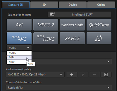 Trial-Π²Π΅ΡΡΠΈΡ ΠΏΡΠΎΠ³ΡΠ°ΠΌΠΌΡ Π½Π΅ΠΌΠ½ΠΎΠ³ΠΎ ΠΎΠ³ΡΠ°Π½ΠΈΡΠΈΠ²Π°Π΅Ρ Π²ΡΠ±ΠΎΡ. Π’Π°ΠΊ, ΡΠΎΡΠΌΠ°Ρ HEVC (H.265) Π² Π΄Π΅ΠΌΠΎ-Π²Π΅ΡΡΠΈΠΈ ΠΏΠ°ΠΊΠ΅ΡΠ° ΠΎΠΊΠ°Π·Π°Π»ΡΡ Π½Π΅Π΄ΠΎΡΡΡΠΏΠ΅Π½.