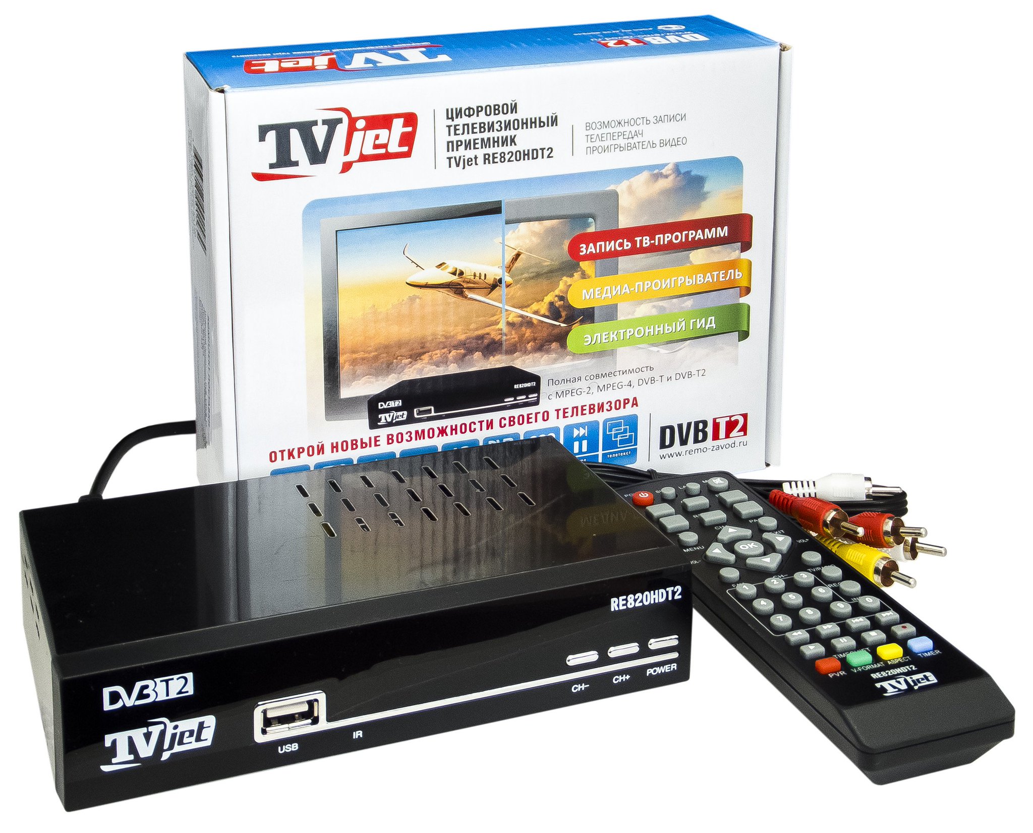 Цифровая приставка (декодер, ресивер, сет-топ-бокс — STB (от англ. Set-Top-Box) – устройство для приема и декодирования сигналов наземного эфирного телевизионного вещания в стандарте DVB-T2 и последующего вывода видео- и аудиосигнала на аналоговый телевизор.