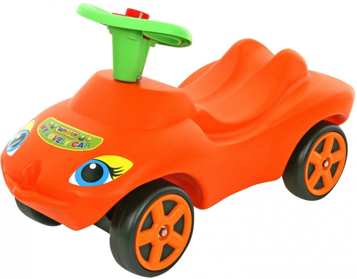 Чаще всего в таком возрасте покупают автомобиль-каталку, в который встроен аккумулятор. Маленький водитель располагается сверху и управляет транспортным средством при помощи руля и педалей.