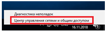 Вместо имени компьютера часто используется IP. Чтобы его просмотреть, правым кликом по значку текущего подключения вызовите Центр управления сетями.