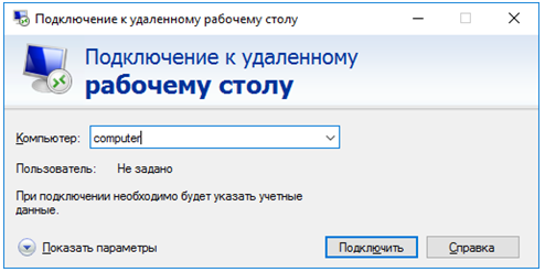 Минимальные требования для соединения – указать имя или IP целевого компьютера.
