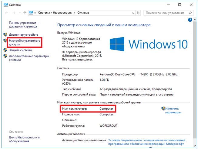 Запомните, какое имя указано для компьютера. Далее перейдите к настройке удаленного доступа.