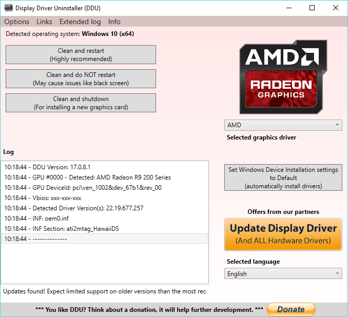 После удаления драйверов пора установить последнее обновление драйверов. Это можно сделать с помощью инструмента автоматического определения драйверов AMD, который можно загрузить с https: // www.amd.com/en/support.