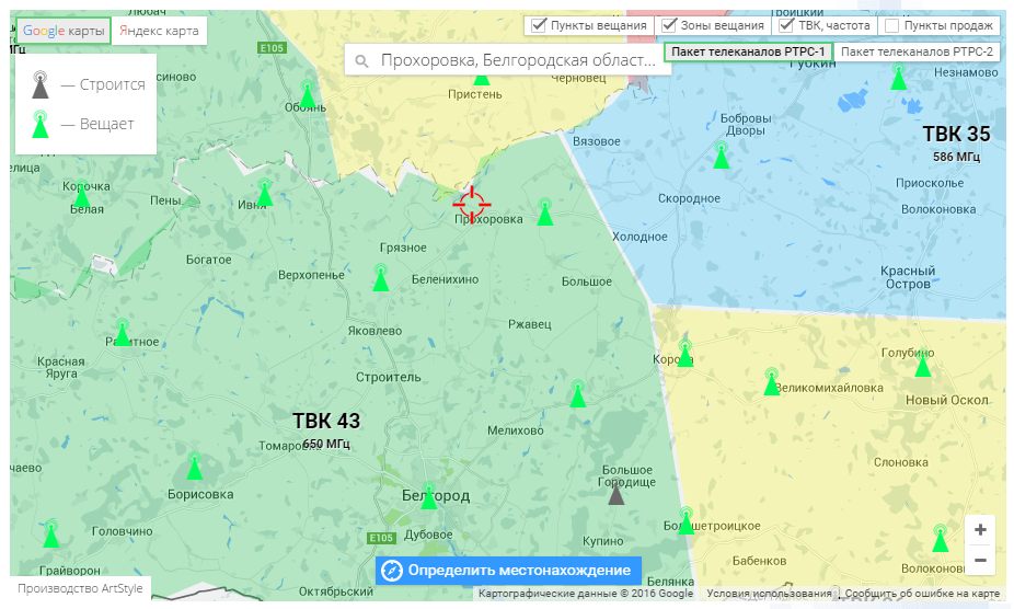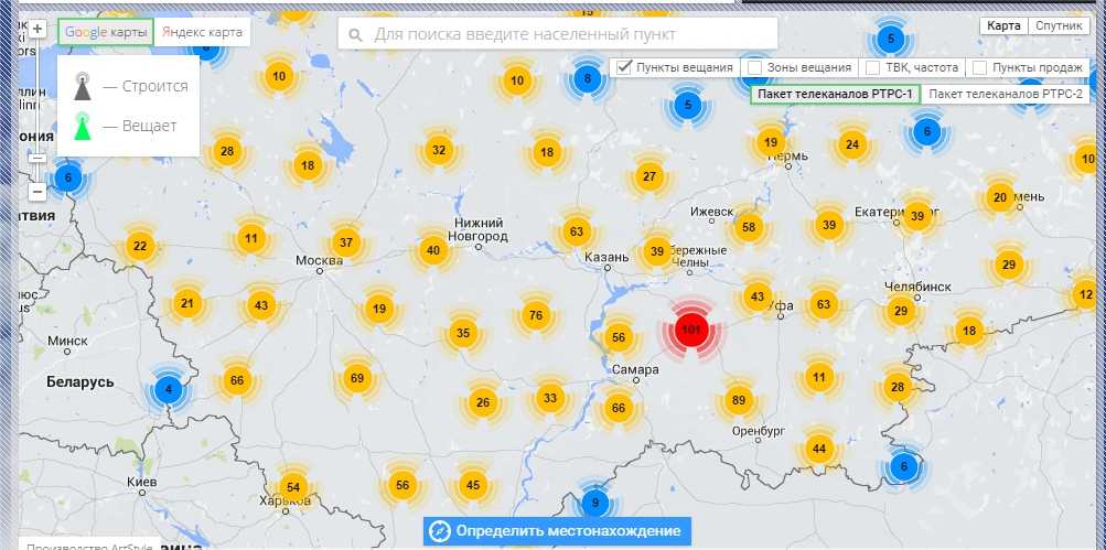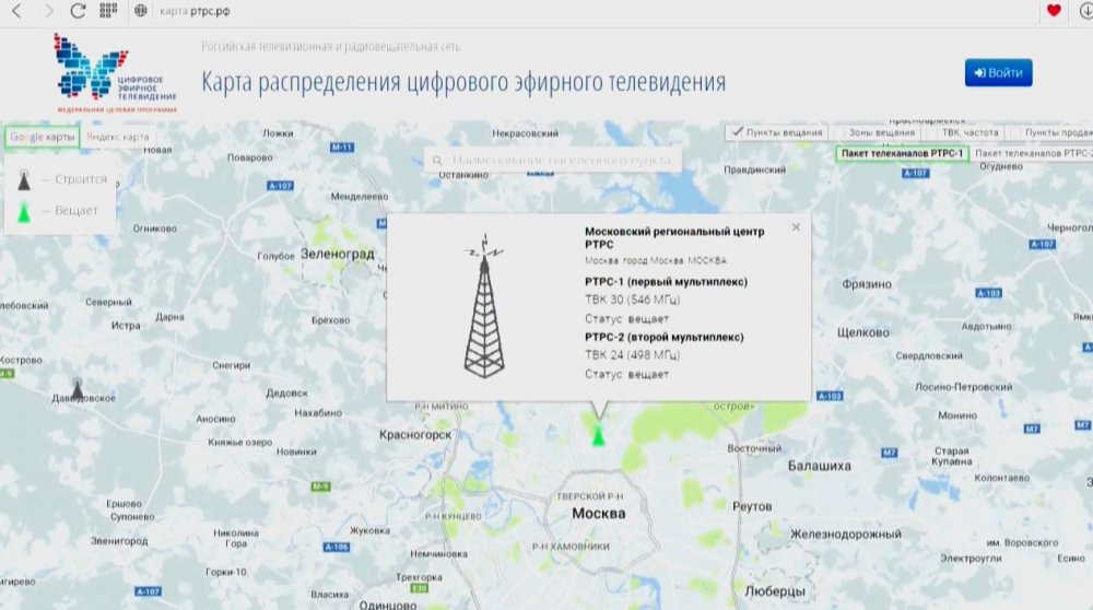 Карта цифрового телевидения Московской области