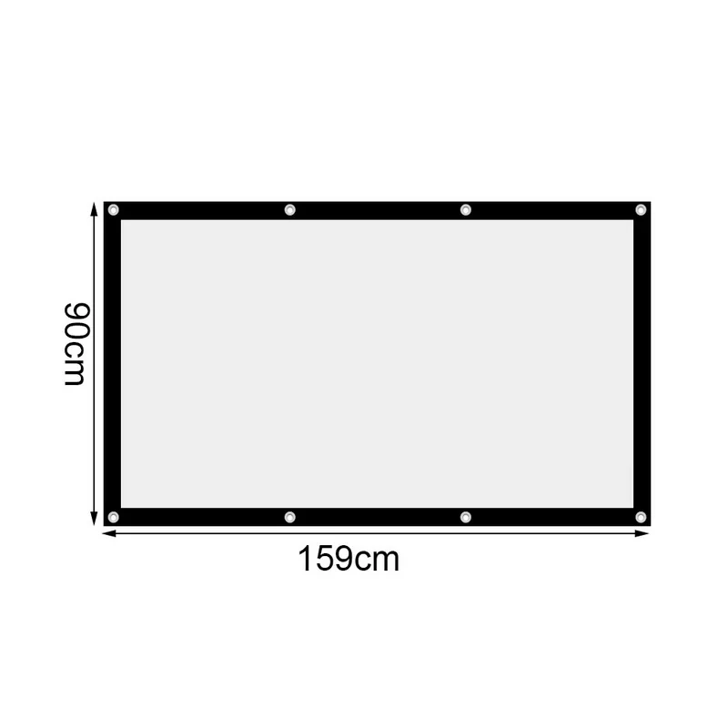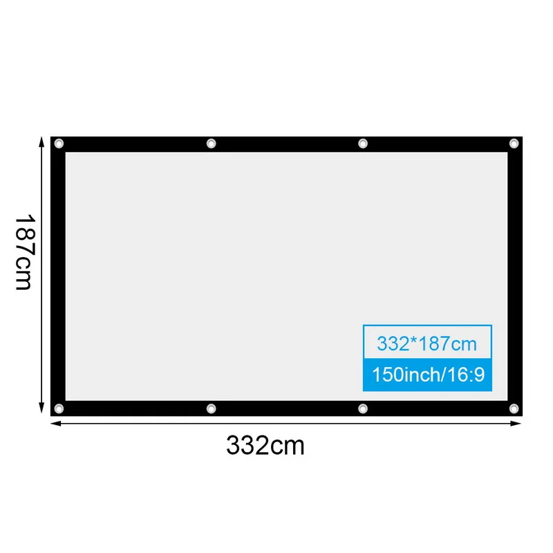 Экран с соотношением сторон 16:9 будет иметь размеры 131 (10,91 фута) и 74 дюйма (6,17 фута) — например, 150-дюймовый экран проектора JWSIT Store.