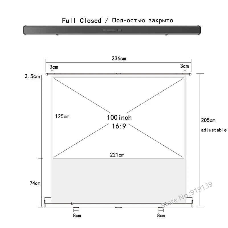 Но рекомендуется, чтобы размер экрана не превышал 110 дюймов, если вы хотите установить экран проектора внутри неспециализированного пространства для проектора.