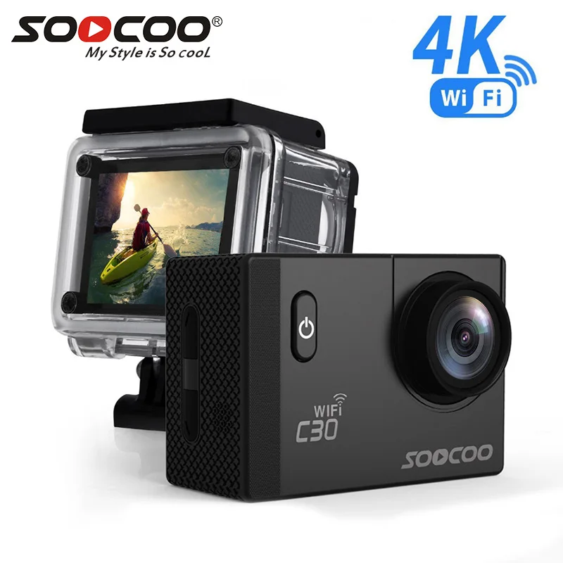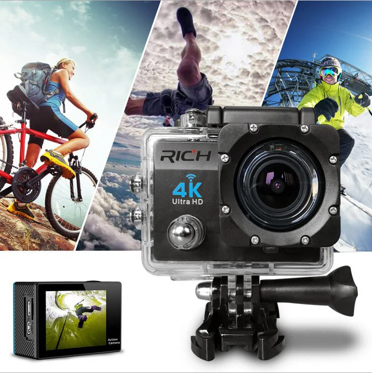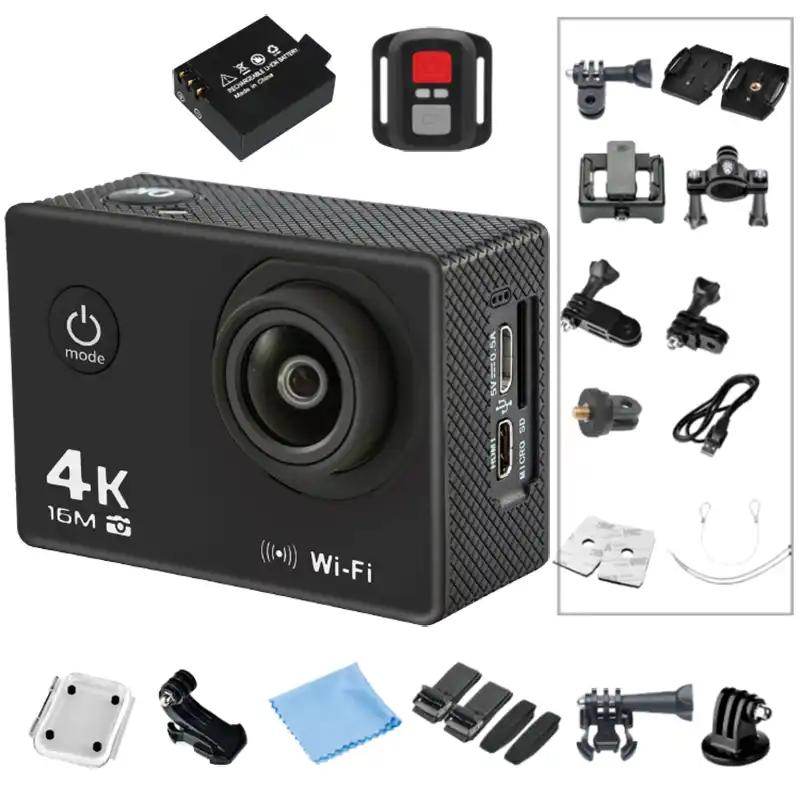 Эту экшн-камеру можно по праву назвать одной из лучших в бюджетном сегменте. Она оснащается чипсетом iCatch V50 и сенсором Sony IMX078. Максимальное разрешение видео, записываемое этим устройством – 4K с 60 к/с, умеет она и фотографировать с разрешением 20 Мп. Угол обзора здесь изменяемый (максимум 170 градусов), есть 8-кратный зум, стабилизация и коррекция изображений. Последняя позволяет минимизировать эффект рыбьего глаза.