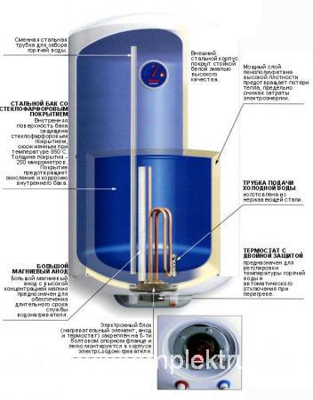 Для тех моделей, емкость которых больше, требуются более мощные нагревательные элементы, но принцип действия у всех водонагревателей одинаковый;