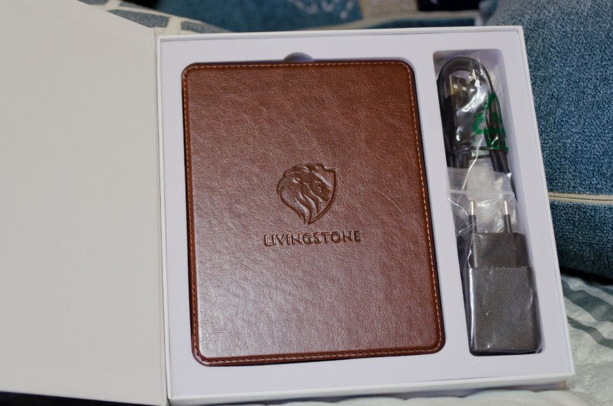 Такие детали в сочетании с коробкой из мелированного картона, чью крышку удерживают магниты, производят приятное впечатление. Читалку можно дарить, не задумываясь о дополнительной подарочной упаковке. Внутри коробки, бок о бок с самим ридером в обложке, уложено зарядное устройство и провод Micro-USB. Там же находится краткая инструкция на русском языке и гарантийный талон.